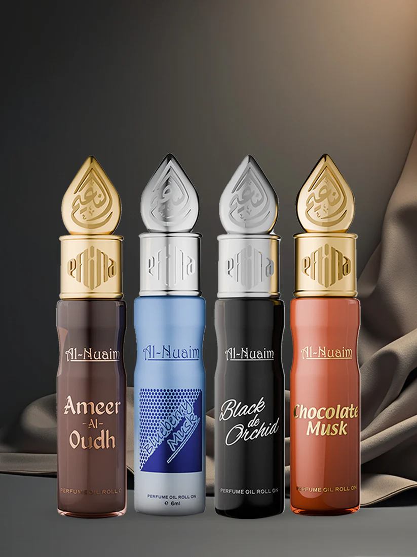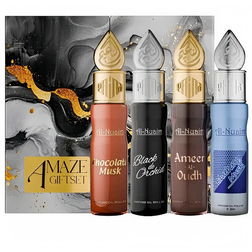 A thoughtfully curated fragrance gift set featuring four distinctive scents that suit every mood and occasion. From warm and indulgent to floral fruity and rich oriental notes this alcohol free collection makes a perfect gifting choice.